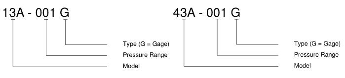 MEAS 13 and 43 Pressure Sensor Ordering Information