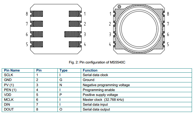 MS5540-CM Absolute Pressure Sensor Module Pin Cinfuguration: