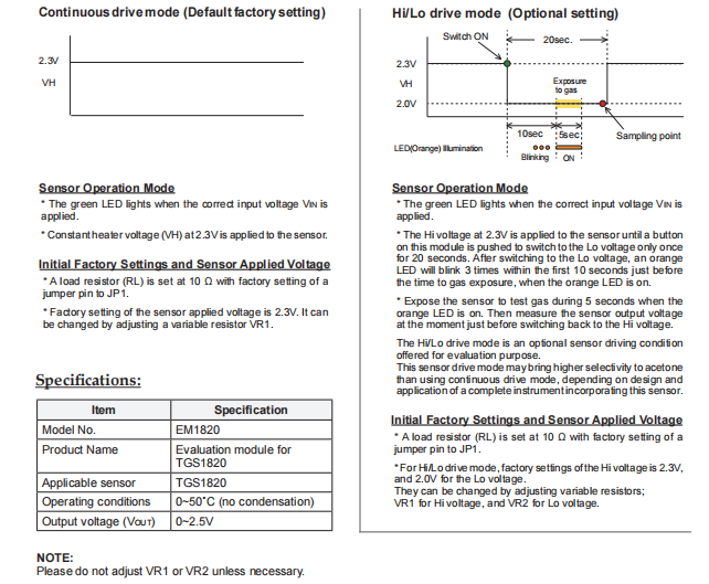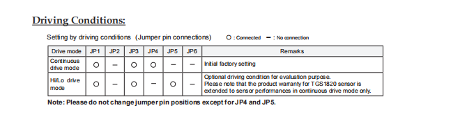 1 Please refer to Product Information for TGS1820 for sensor characteristics.