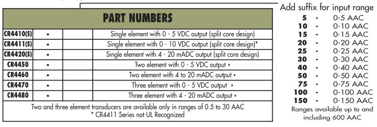 CR4410 Average RMS AC Current Transducer PART NUMBERS