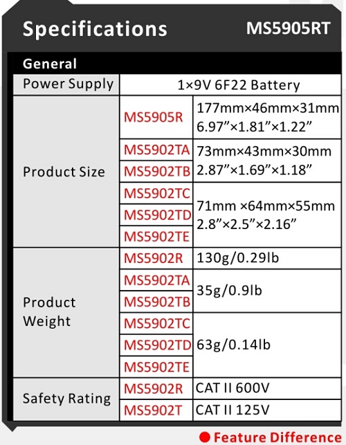 ? MS5905R Built-in Non-Contact Voltage Detector (NCV)