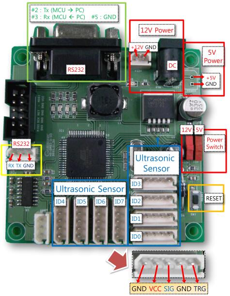 ? Channel : Connect up to 8 Ultrasonic Sensors