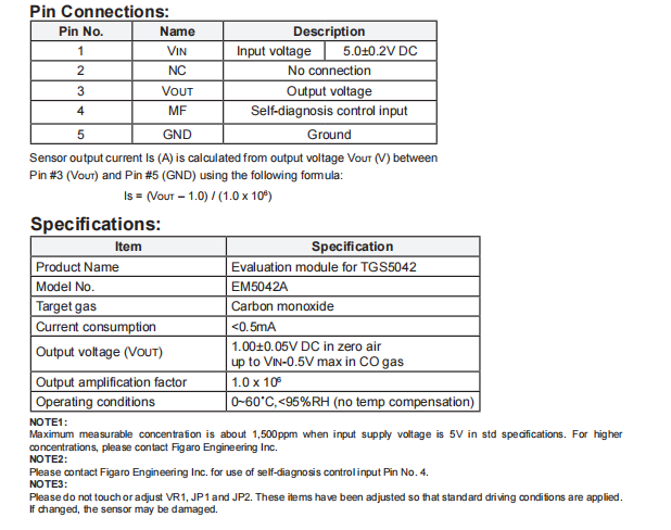*1For more details of characteristics and performance of TGS5042 sensor, refer to Technical Information for TGS5042.