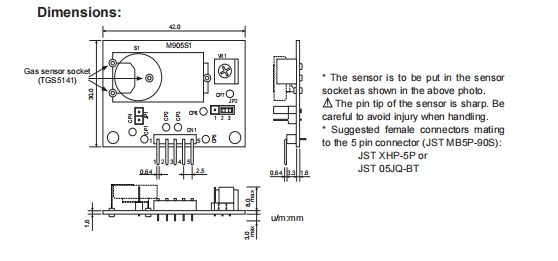 *2 The main function of this module is to simply convert sensor output current into voltage output without temperature compensation. For more information on a temperature compensation circuit, refer to Application Notes for TGS5xxx or contact Figaro.