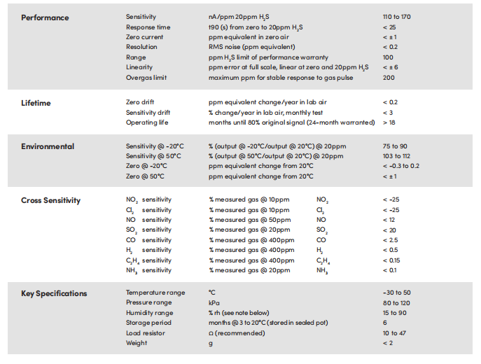 Electrochemical H2S Hydrogen Sulfide Sensor Miniature Size H2S-H4 specification: