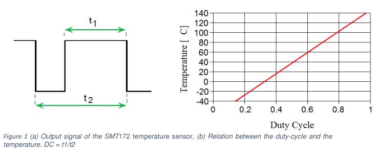 This document describes a 4 channel temperature measurement system: The New Smart Temperature Acquisition System (SMTAS04usbmini). It is based on the use of the Smartec temperature sensors SMT172. The SMT172 is a three terminal integrated temperature sensor with a duty cycle output. Two terminals are used for the power supply of and the third terminal carries the output signal. The output signal of the sensor is a duty-cycle-modulated square-wave signal (see Figure 1).