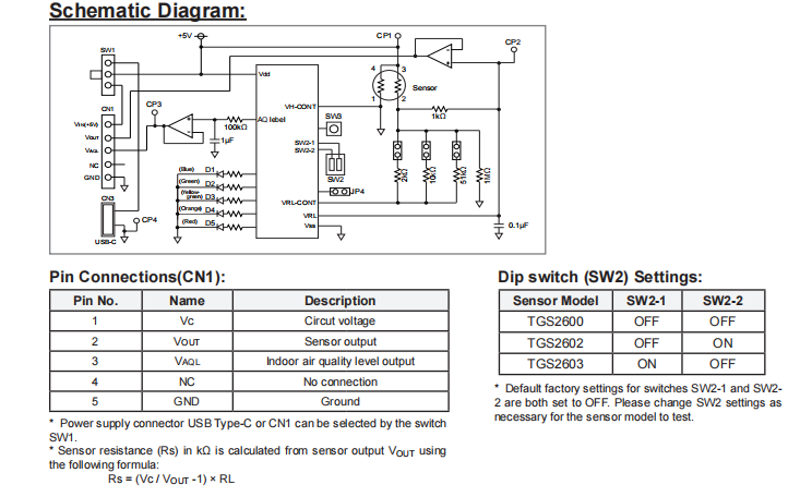 *2 The main function of this module is to convert output voltage of the sensor to indoor air quality level output and to provide LED indications without temperature compensation.