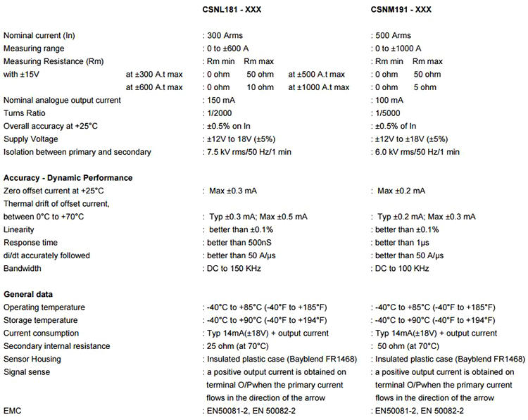 The sensors are closed loop devices based on the principle of the hall effect and null balance method. The output from the current sensor is the balancing current which is a perfect image of the primary current reduced by the number of secondary turns at any time. This current can be expressed as a voltage by passing it through a resistor.