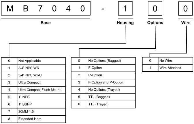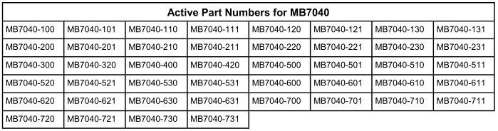 The legacy part numbers MB7047, MB7240 and MB7247 are now contained within MB7040 which is the base for all housing options on this product. To select a product with a legacy part number, select the desired housing option on the product with the appropriate base. Please review the following table for more information.