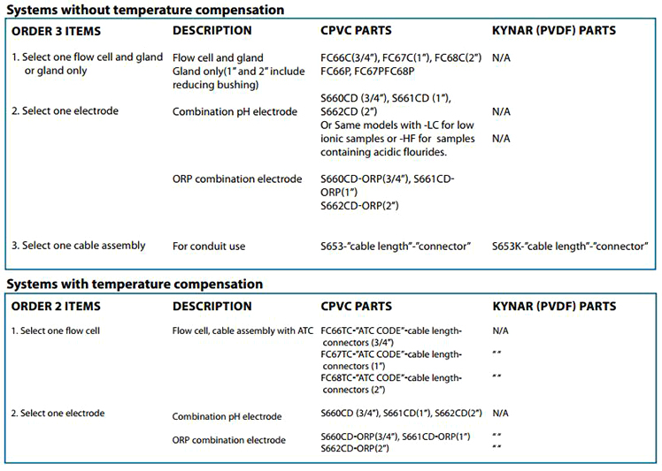 S660 Series pH and ORP Electrodes ORDERING INFORMATION