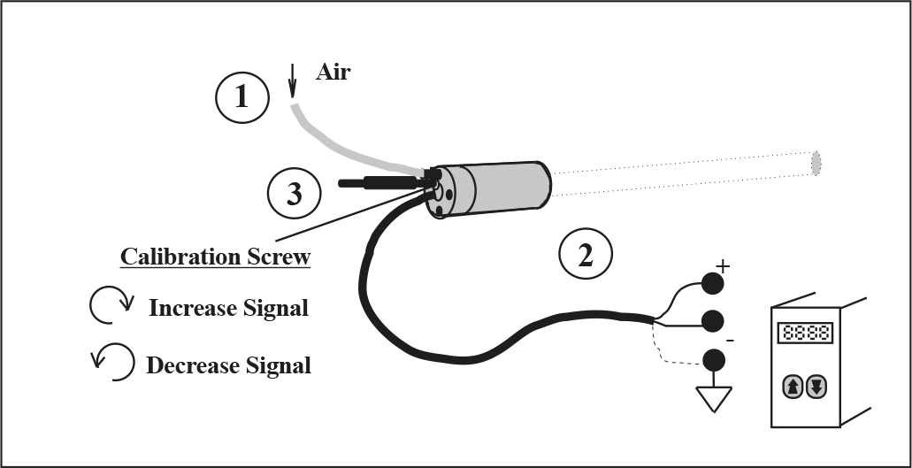 ?Calibration screw operates like a radio volume control: clockwise increases signal.