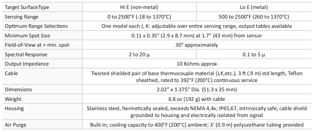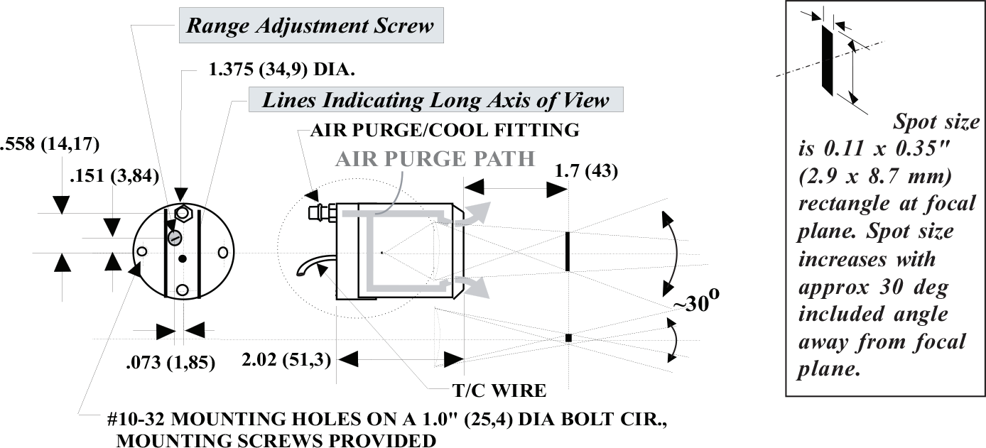 2. Install IRt/c and align to view the desired target. Bring target to operating temperature if not already there. Connect leads to readout device to be used (controller, PLC, etc.).