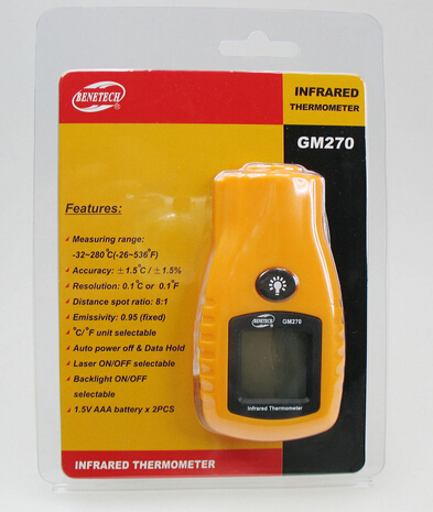 This infrared thermometer is used for measuring the temperature of the object's surface, which is applicable for various hot, hazardous or hard-to-reach objects without contact safely and quickly.