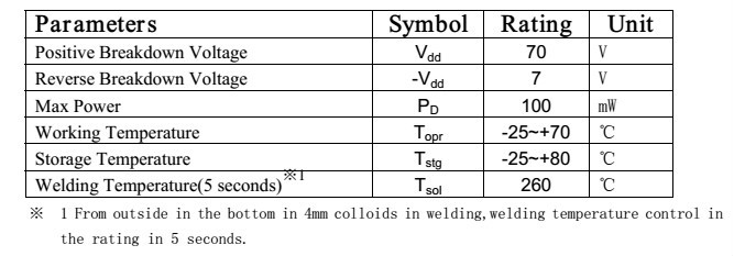EKPSMD021 Linear Photosensitive Sensor Limit parameters Ta=25℃