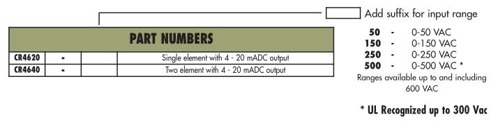 CR4620 AC Voltage Transmitter PART NUMBERS