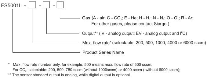 FS5001L series Mass Flow Sensors Product Selection