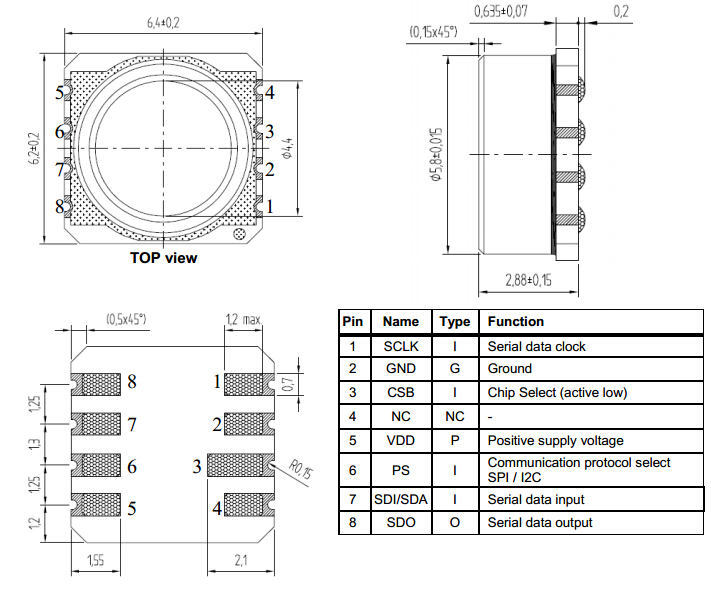 MS5803-02BA High Resolution Pressure Sensor Module Package Outline and Pin Configuration