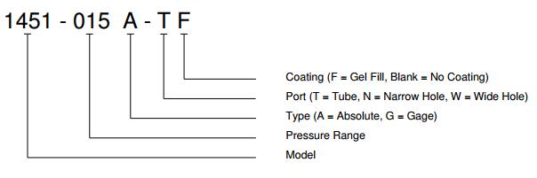 MS1451 PC Board Mountable Pressure Sensor Ordering Information