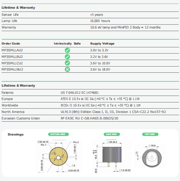 The MiniPID 2 PPM VOC Gas Sensor – MiniPID 2 is a simple plug-and-play sensor able to deliver a dynamic and dependable response to thousands of volatile organic compounds (VOCs) across many diverse applications.
