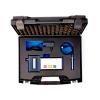 A closed sturdy metal housing protects the unit against external hazard and ensures the IP65 degree of protection. The device is run by rechargeable batteries, equipped with a LCD display with backlight, automatic measuring range changer and can be controlled easily by only 3 buttons. Battery recharge and power supply can be done by a wall power supply and it is possible to connect a printer or computer. The measuring device comes in a transport case.