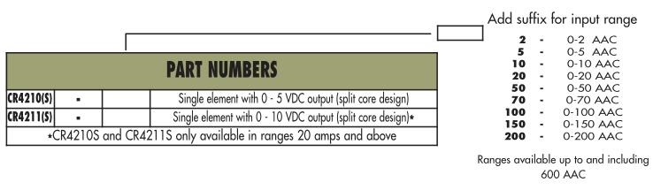 CR4211S Self Powered AC Current Transducer PART NUMBERS