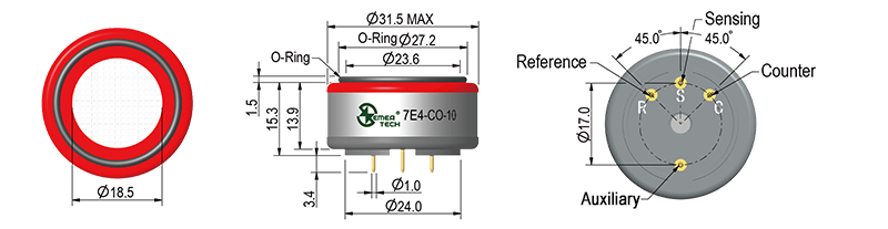 SemeaTech 4-Electrode CO Sensor - 7E4-CO-10