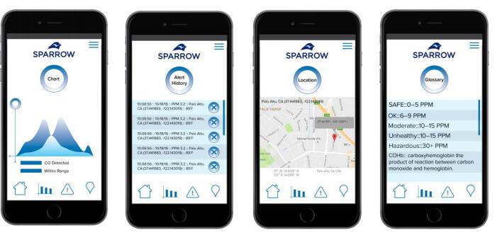 Displays and tracks exposure over time, giving you information on health effects and even notifying others in the event of an emergency. SPARROW App will also store and map the location of unhealthy air events so you can plan healthier routes in the future. While you can customize your alerts and notifications to your needs, the SPARROW and its app will always alert you to hazardous life threatening situations with audible and visual alarms.