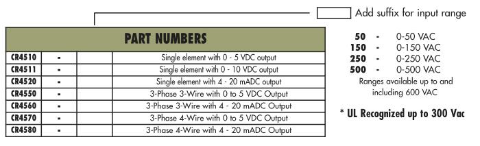 CR4550 True RMS AC Voltage Transducer PART NUMBERS