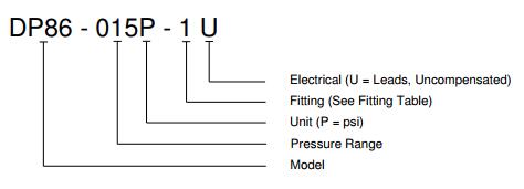 DP86U Differential Pressure Sensor Ordering Information