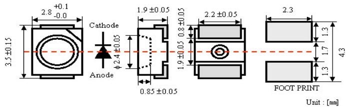 - Chip size 0.4mm,SMD 3528 PKG,