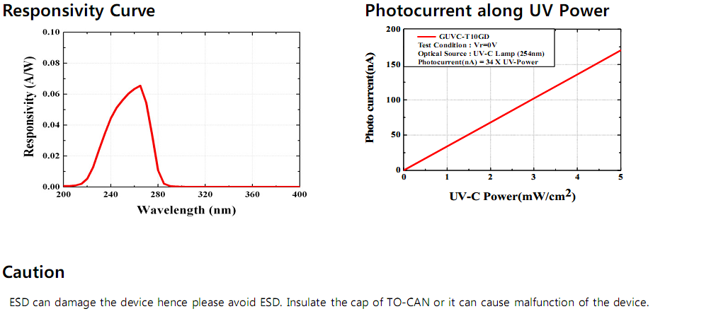 5. GUVC-T10GD UV Sensor Characteristics (at 25℃)