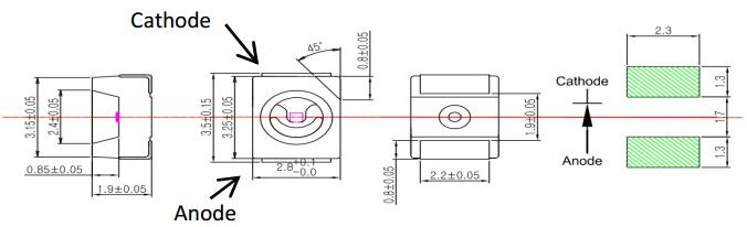 Photo Current (Typ.): 90nA (UVA (352nm), 1mW/cm2);