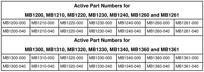 MB1300, MB1310, MB1320, MB1330, MB1340, MB1360, MB1361